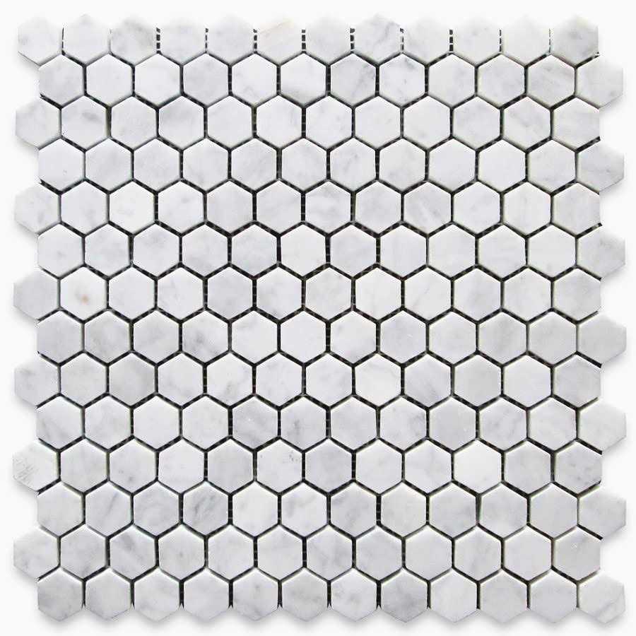 StoneCenterOnline 1 Hexagon Carrera Marble White Carrara Venato Mosaic Tile - MT