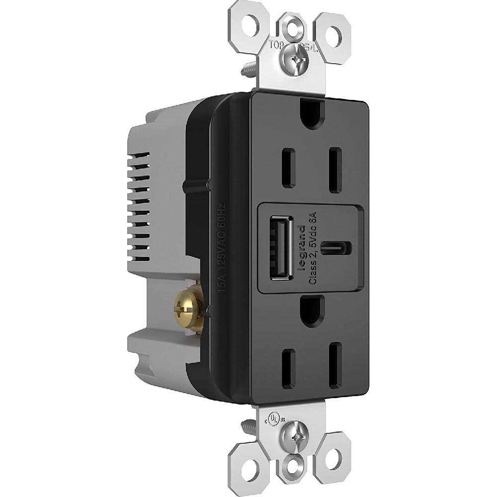 Legrand R26USBAC6BK Radiant – 15A Tamper-Resistant Ultra-Fast USB Type-A/C Outlet Receptacle-Black Finish - MT