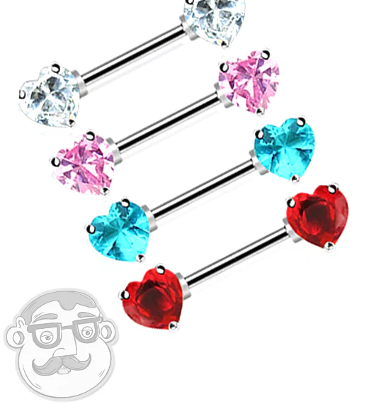 Heart Nipple Ring With Double CZ Diamond Barbell