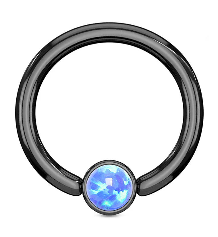 Black PVD Blue Opalite Flat Disk Captive Ring