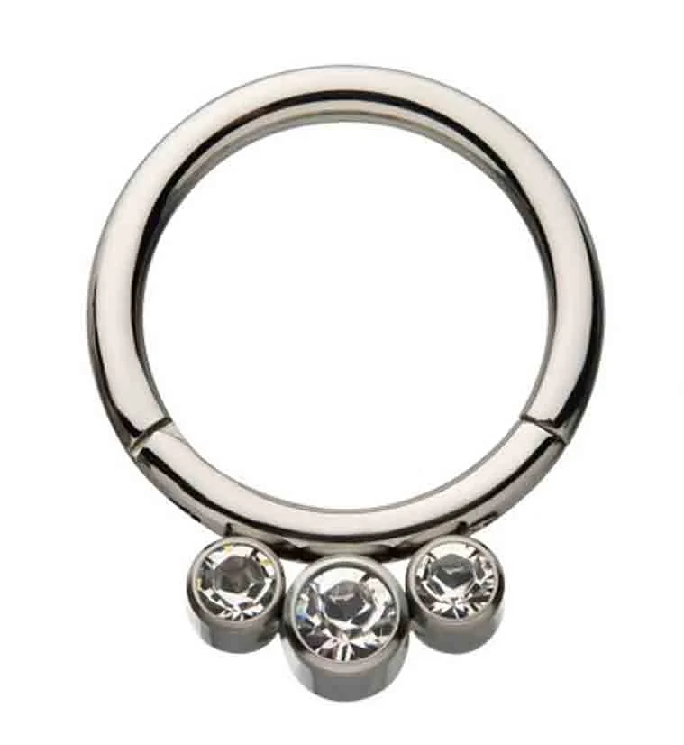 Titanium Hinged Triple CZ Segment Ring