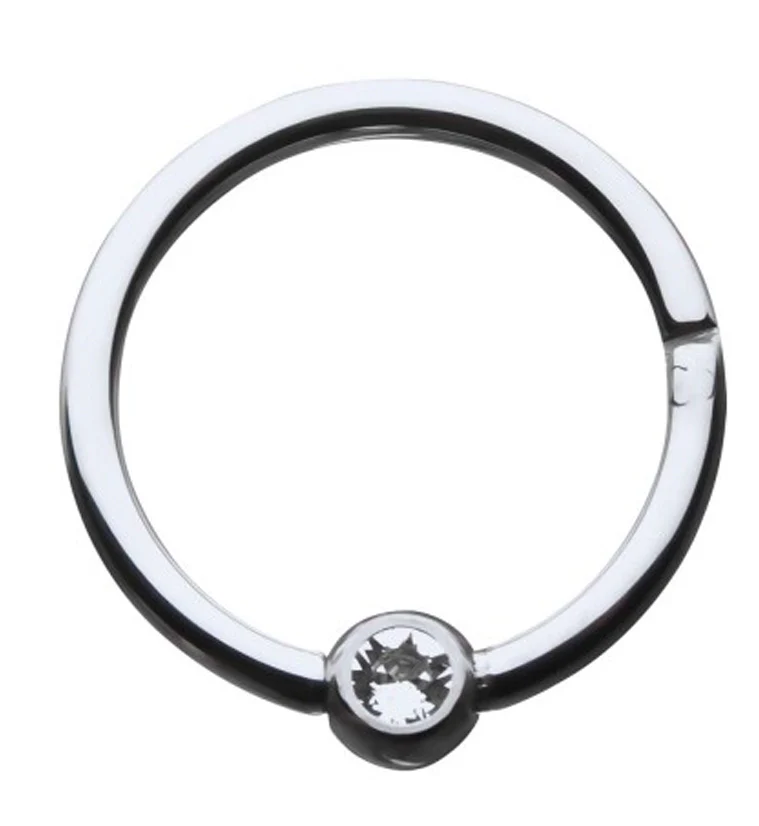 Single CZ Beaded Titanium Hinged Segment Ring