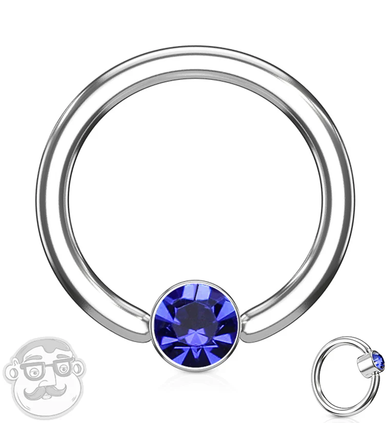 Blue CZ Flat Disk Captive Ring
