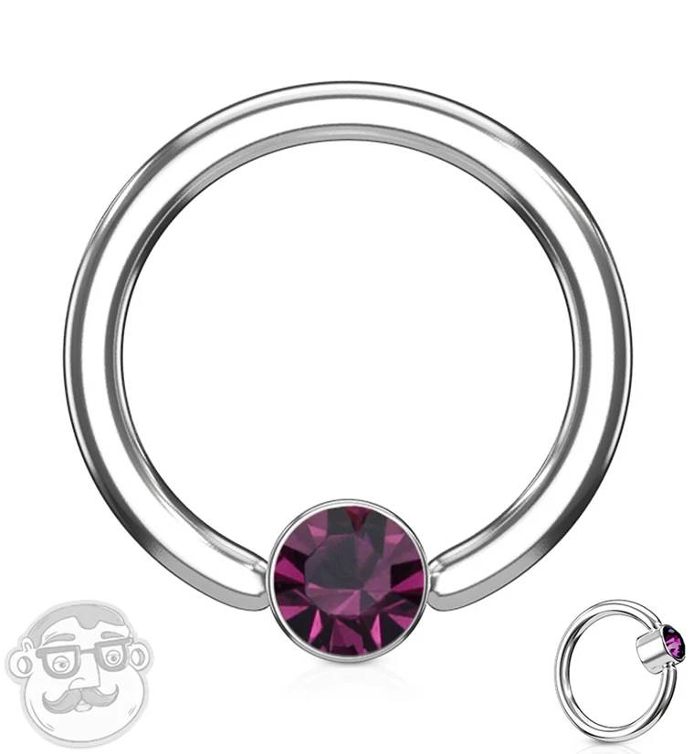 Purple CZ Flat Disk Captive Ring