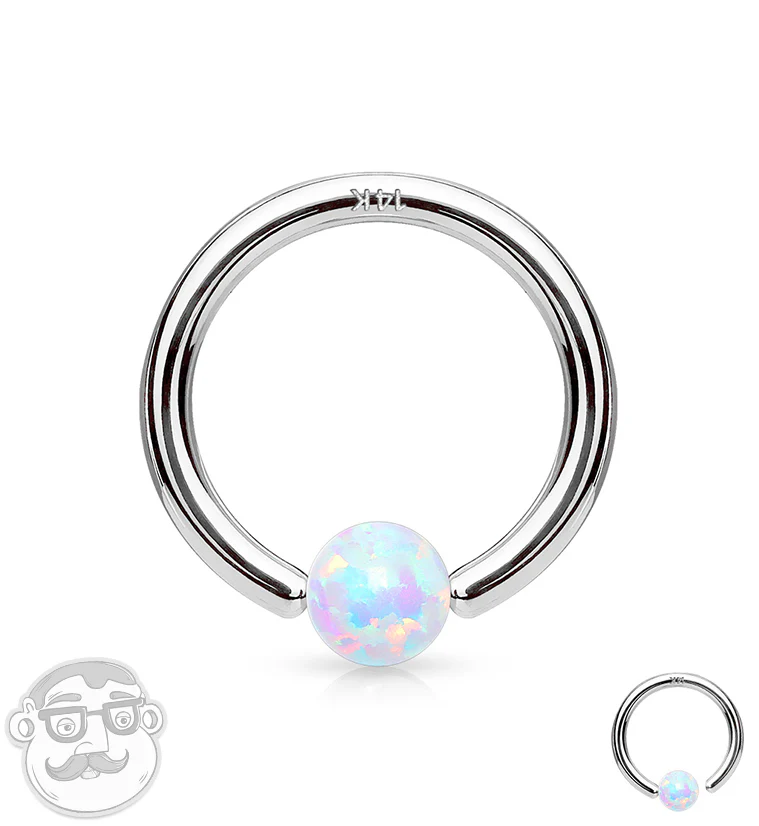 Opalite 14kt White Gold Annealed Fixed Captive Ring