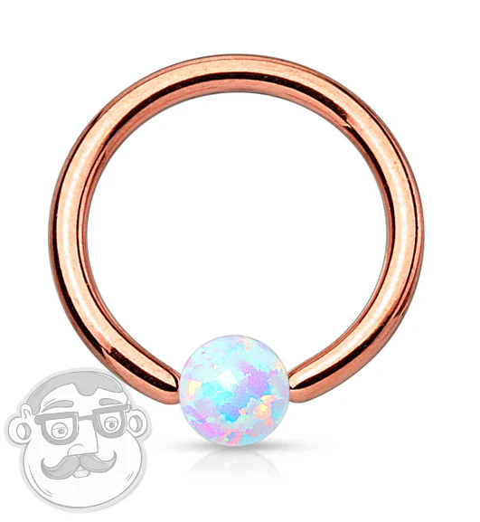 Rose Gold PVD White Opalite Captive Ring