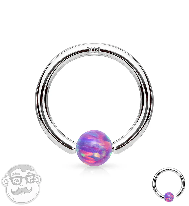 Purple Opalite 14kt White Gold Annealed Fixed Captive Ring
