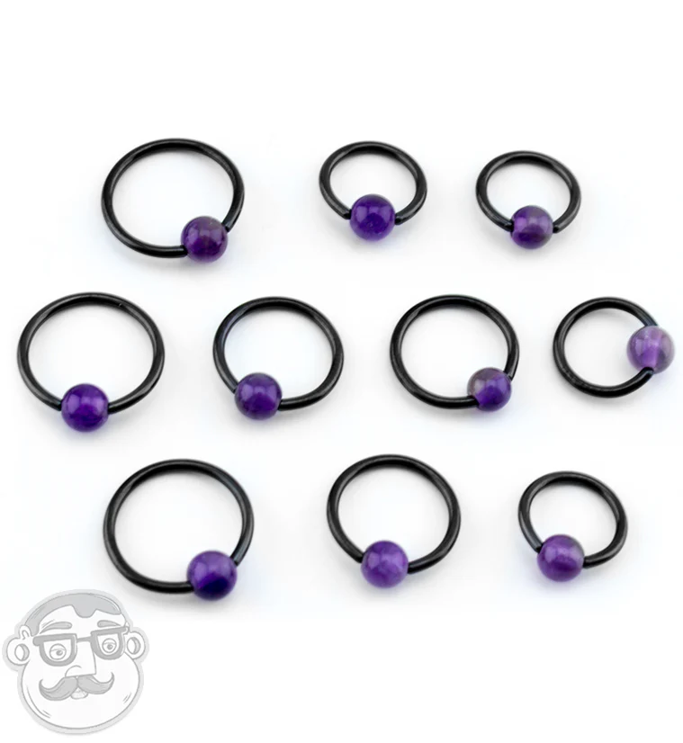 Amethyst Stone Black PVD Captive Bead Ring