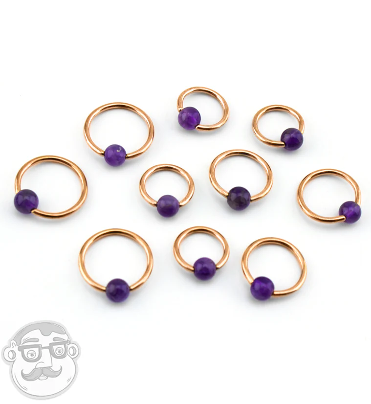 Amethyst Stone Rose Gold PVD Captive Bead Ring