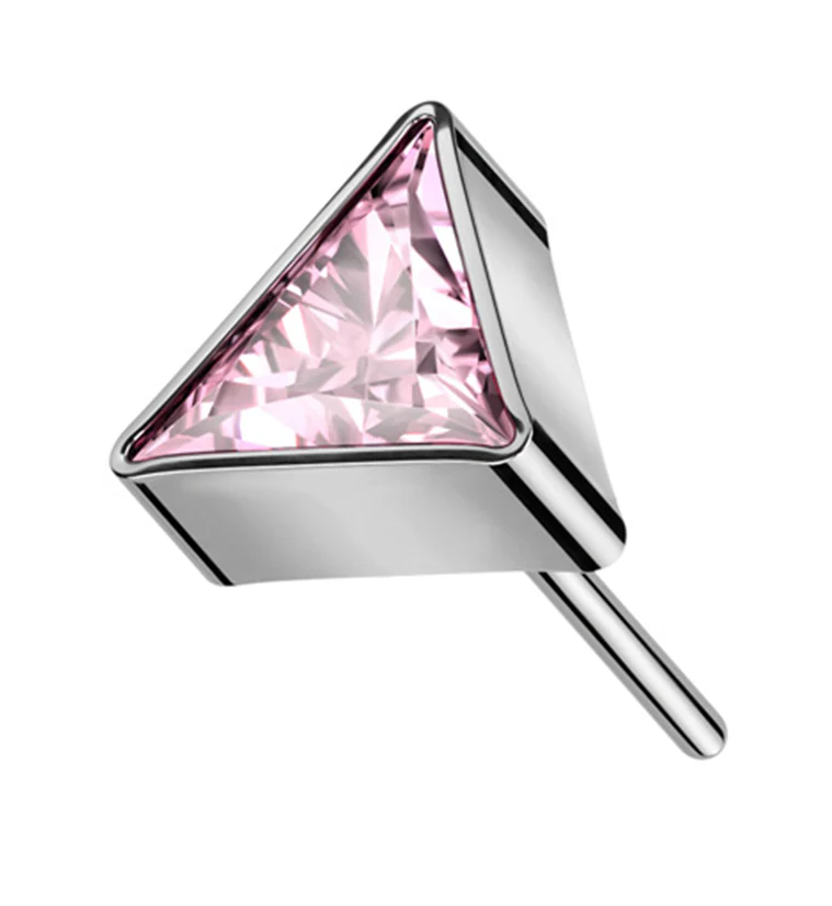Triangle Pink CZ Threadless Titanium Top