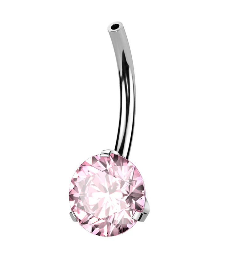 Prong Pink CZ Titanium Threadless Belly Button Ring Base