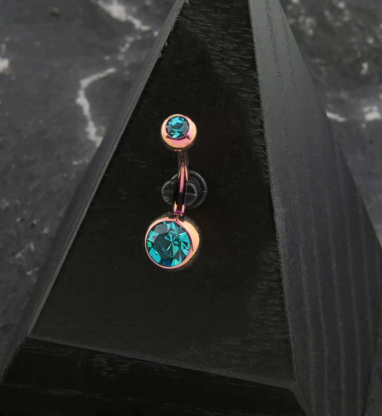 Rose Gold Anodized Faceted Aqua CZ Internally Threaded Titanium Belly Button Ring