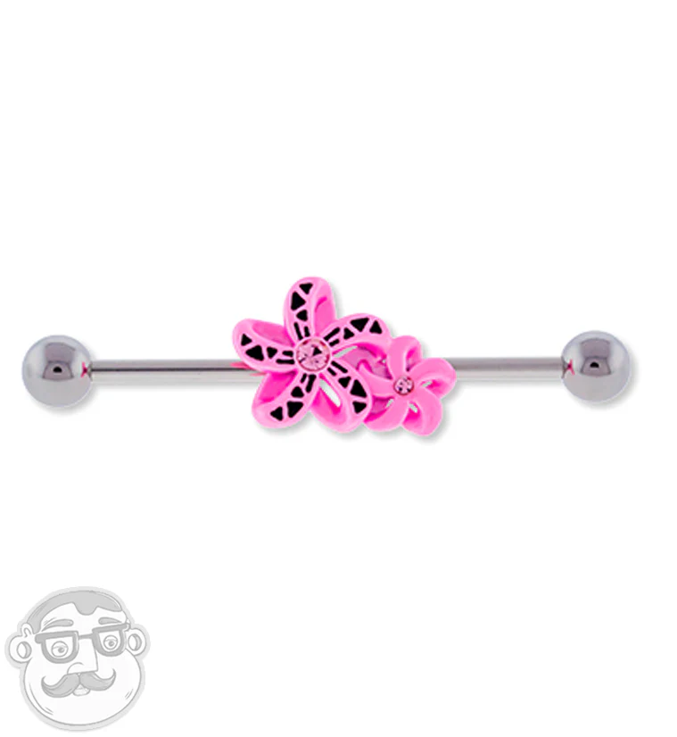 Pink Tropic Flower Industrial Barbell