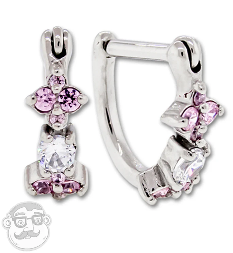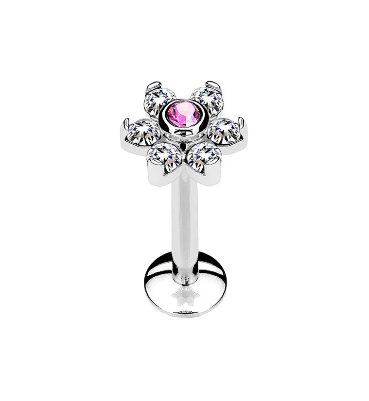 16G Pink & Clear Flower Internally Threaded Flatback Post