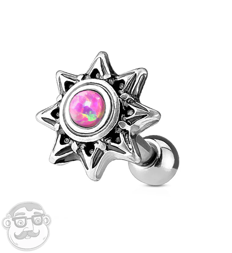 16G Tribal Blaze Pink Opal Cartilage - Tragus Barbell
