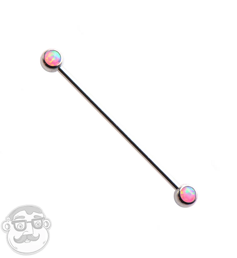 Pink Single Opal Stainless Steel Barbell