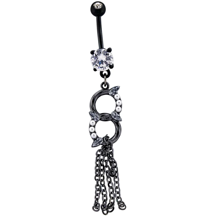 Black Chained Gem Belly Button Ring