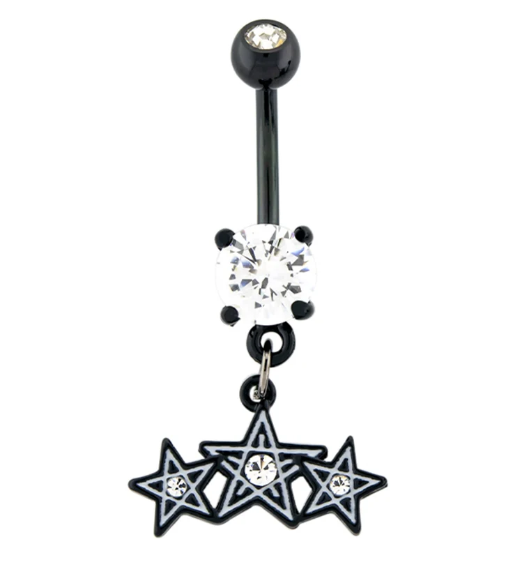 Black & White CZ Stars Belly Button Ring