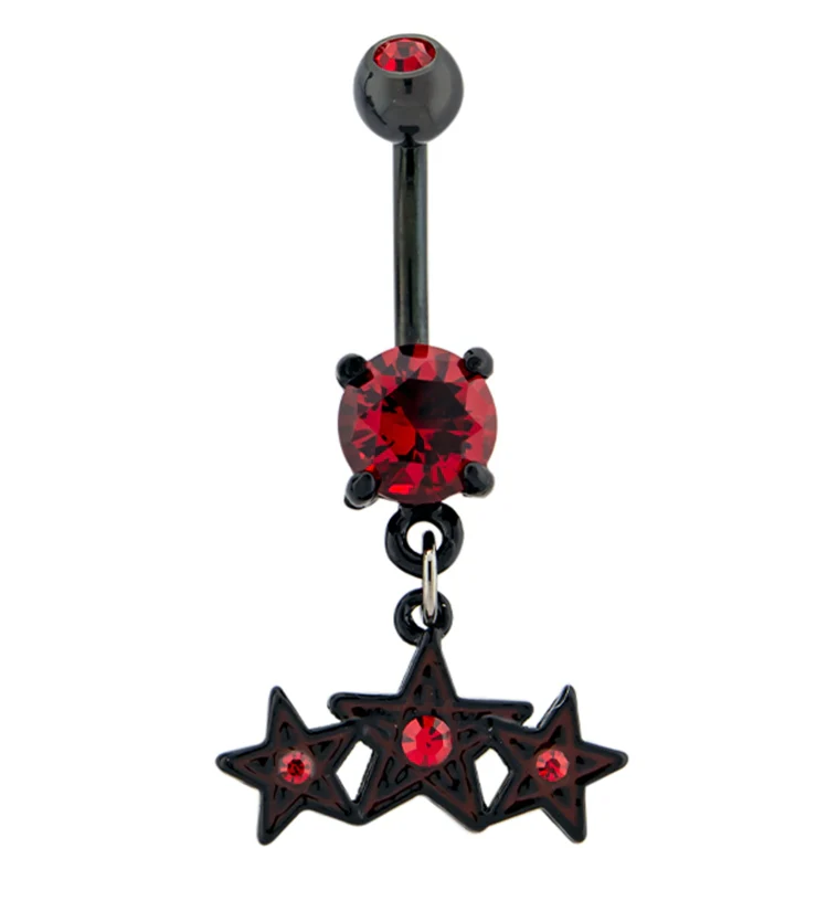 Black & Red CZ Stars Belly Button Ring