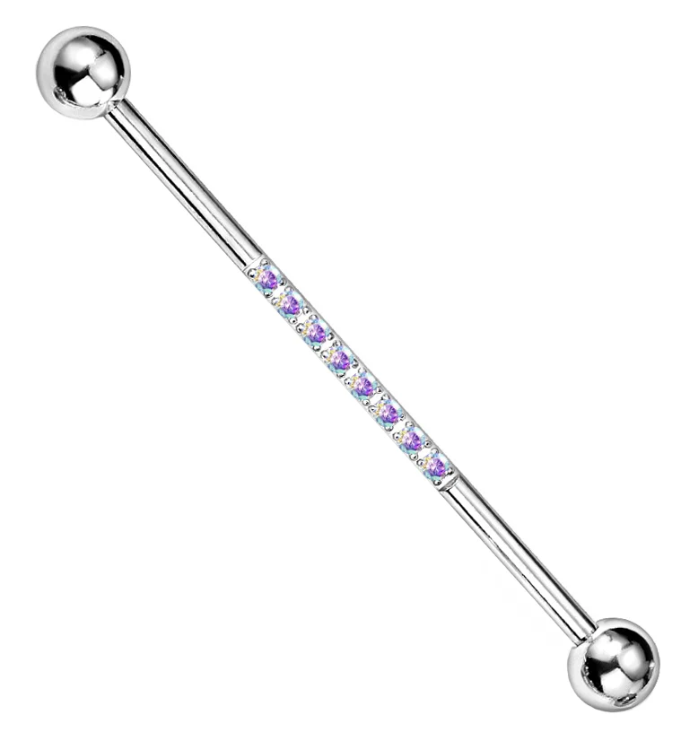 Center Line Rainbow Aurora CZ Industrial Barbell