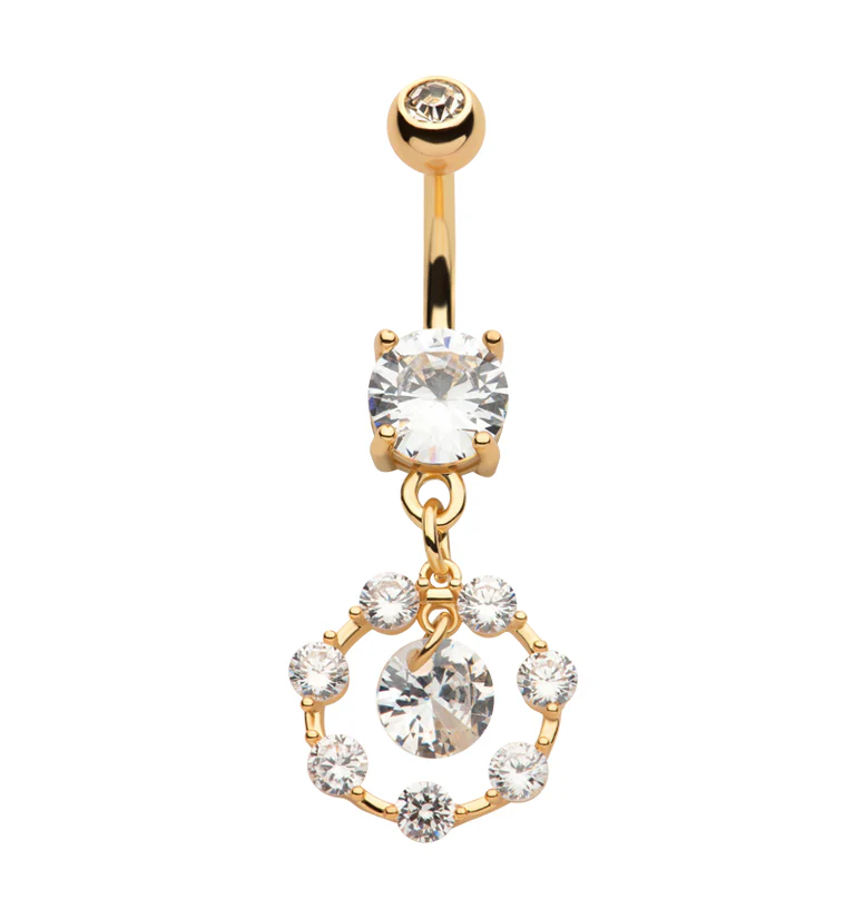 Gold PVD Circle Dangle CZ Stainless Steel Belly Button Ring