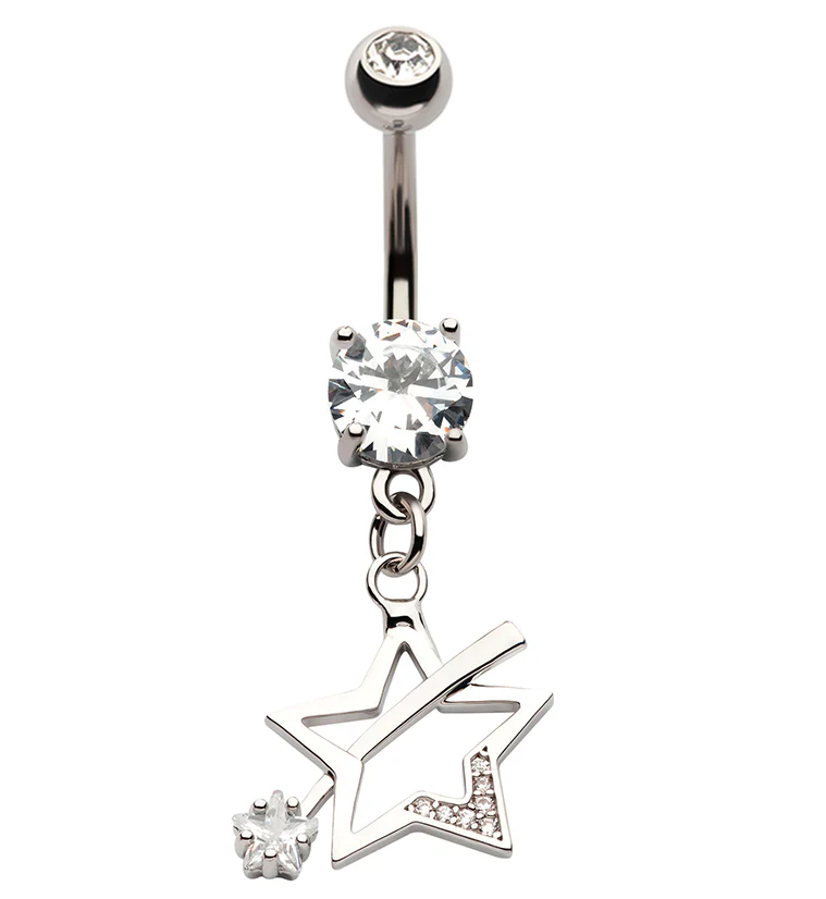 Shooting Star CZ Dangle Stainless Steel Belly Button Ring