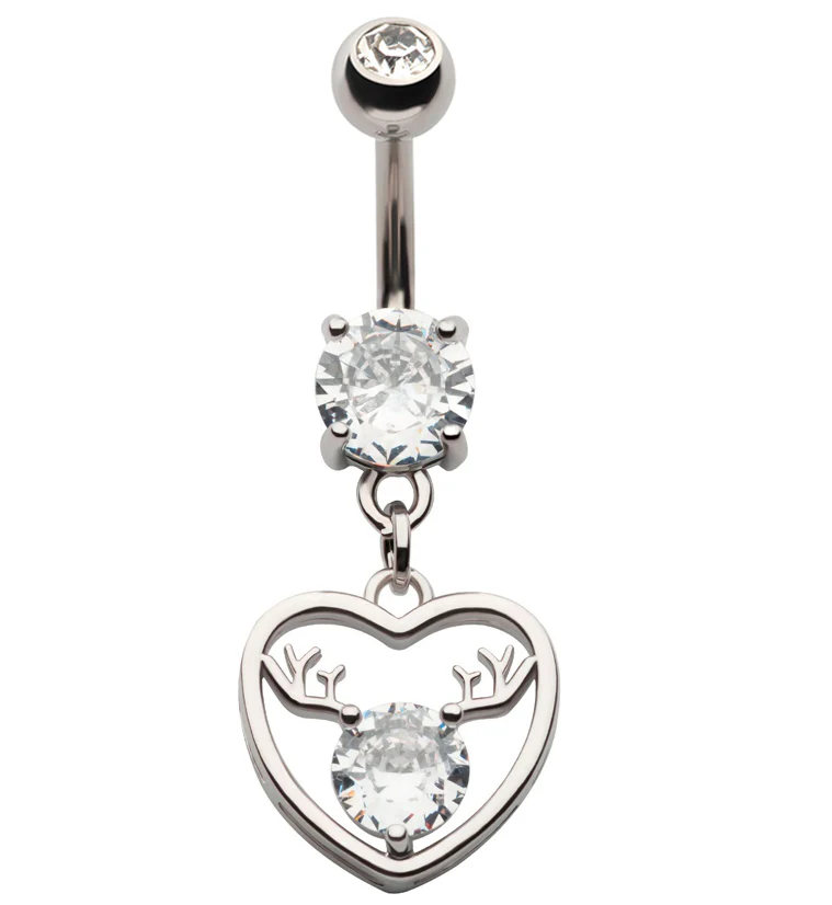 Antler Heart CZ Stainless Steel Belly Button Ring