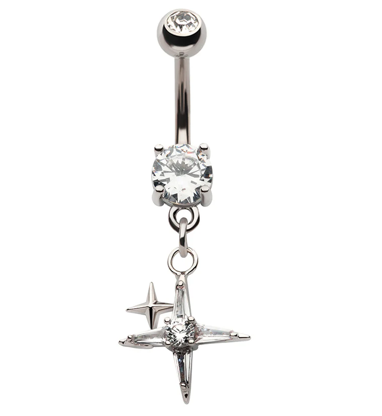 Compass Star CZ Dangle Stainless Steel Belly Button Ring