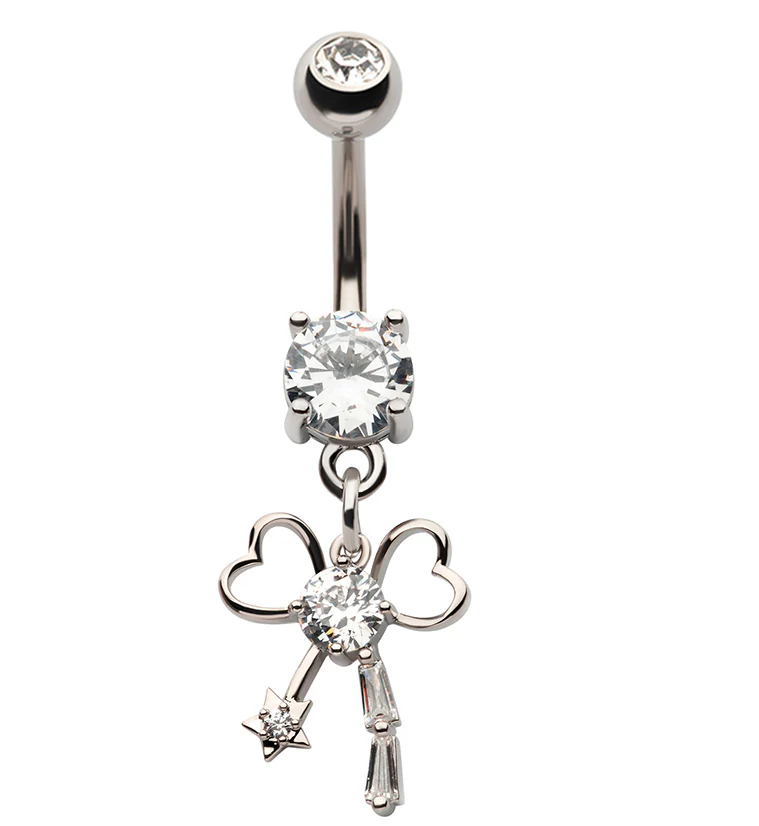 Heart Bow CZ Dangle Stainless Steel Belly Button Ring