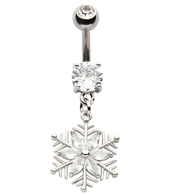 Flower Snowflake CZ Dangle Stainless Steel Belly Button Ring