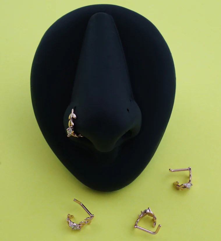 Rose Gold PVD Wrapped Leaf Clear CZ Nose Curve
