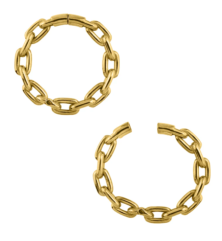 Gold PVD Chain Link Stainless Steel Hinged Ear Weights