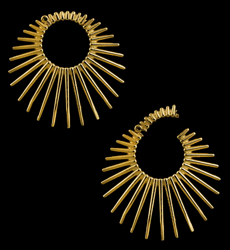 Gold PVD Sunburst Stainless Steel Hinged Ear Weights