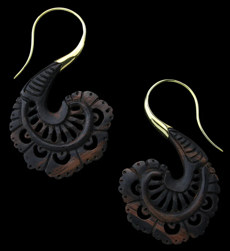 18G Aigrette Brass Areng Wood Hangers / Earrings