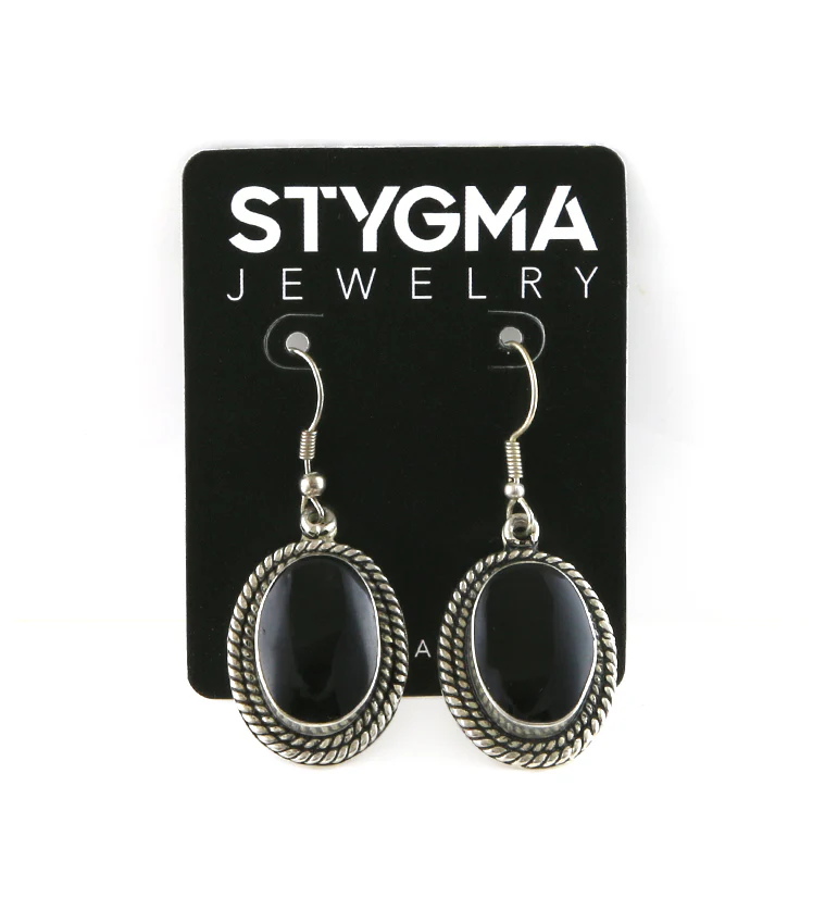 Double Threaded Oval Onyx Stone Earrings