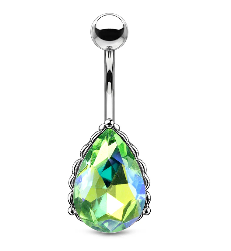 Green Aurora Gem Drop Belly Button Ring