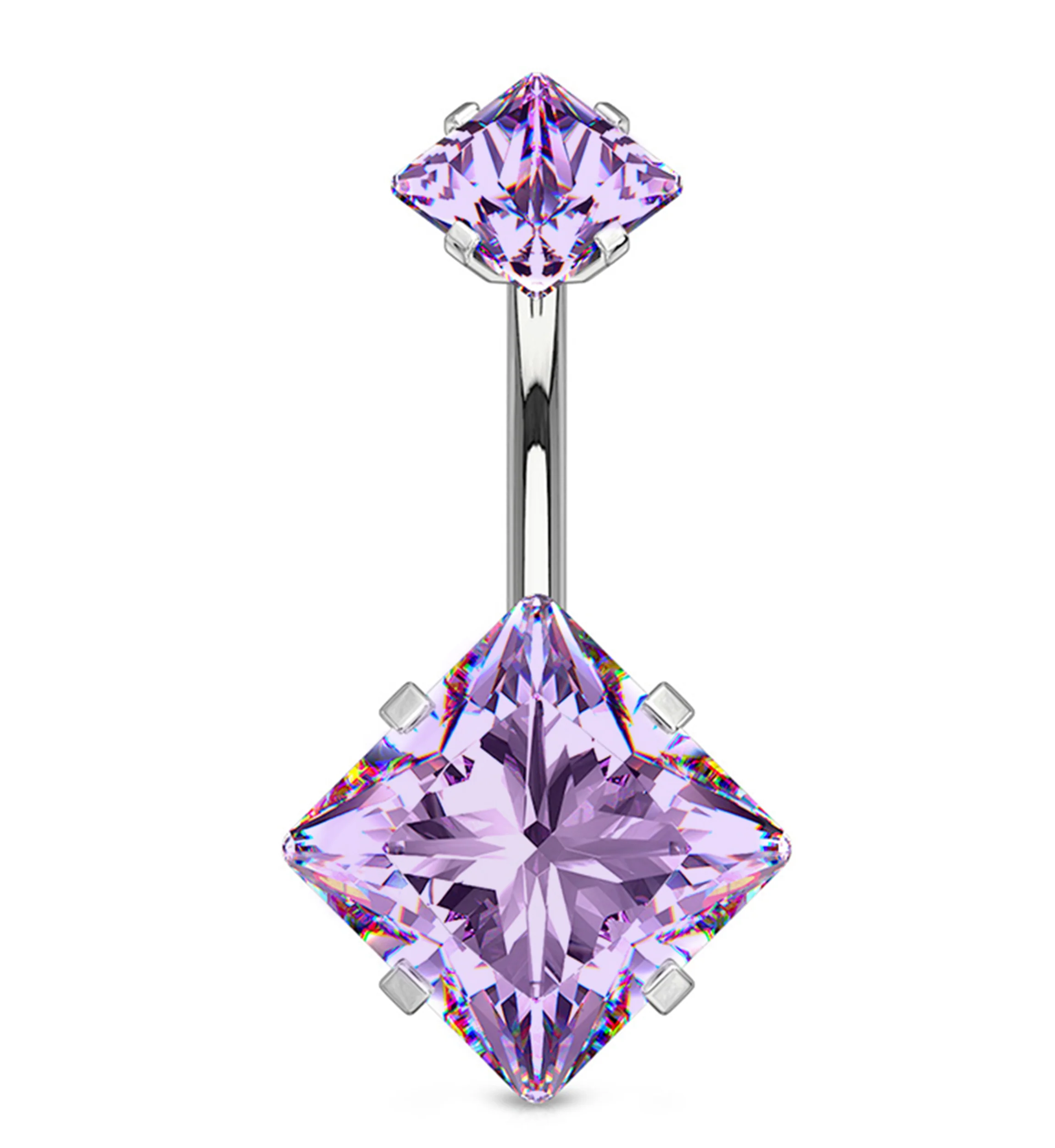 Purple CZ Square Internally Threaded Belly Button Ring