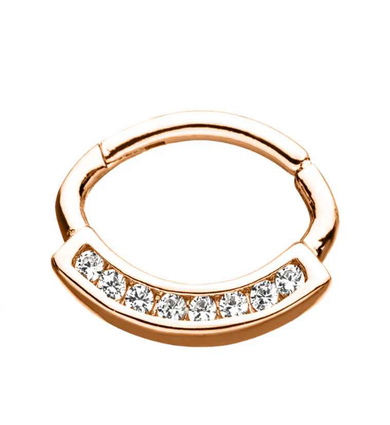 14G Rose Gold PVD CZ Rim Nipple Ring Barbell