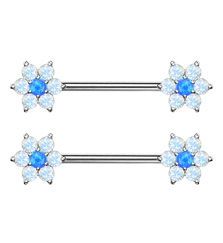 14G Blue & White Opalite Flower Nipple Ring Barbell