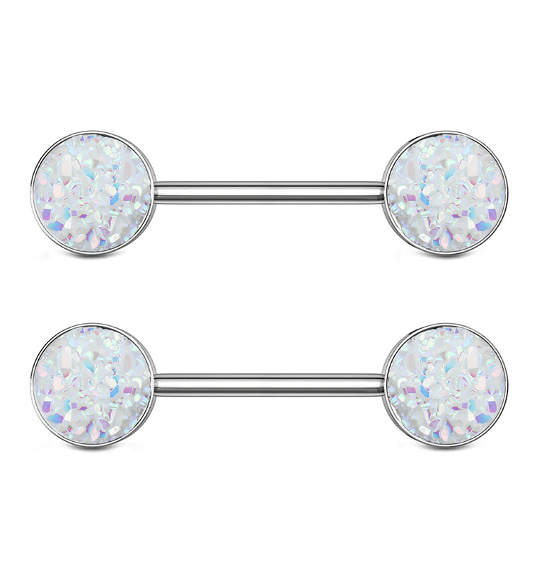 14G White Druzy Nipple Ring Barbell