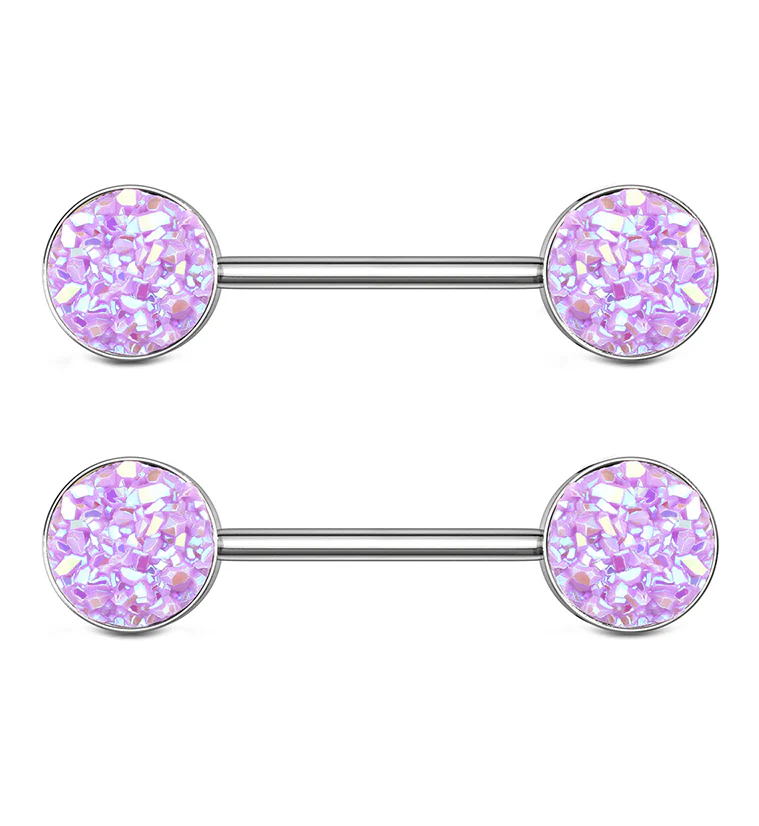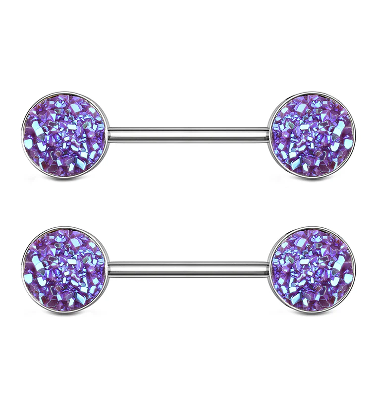 14G Purple Druzy Nipple Ring Barbell
