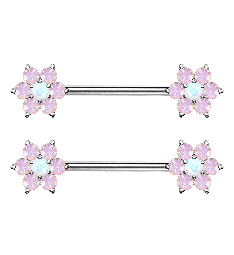 14G White & Pink Opalite Flower Nipple Ring Barbell