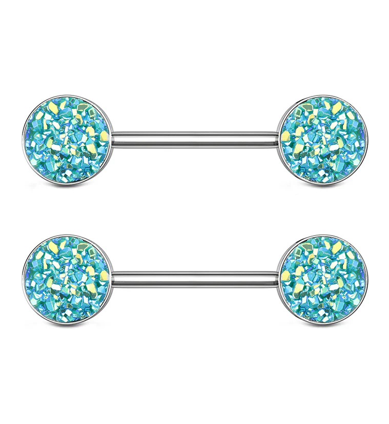 14G Blue Druzy Nipple Ring Barbell