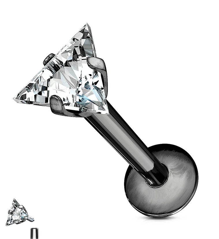 Black PVD Triangle CZ Prong Internally Threaded Labret