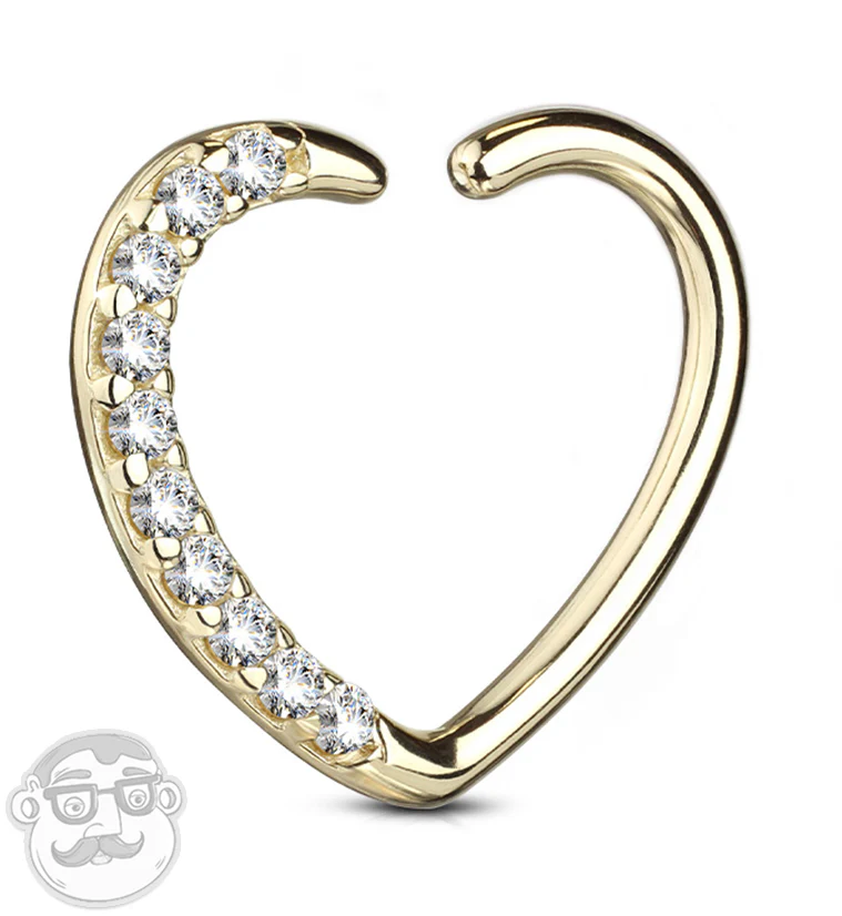16G 14kt Gold Heart CZ Daith Cartilage Ring