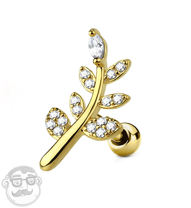 16G Gold PVD Frond Cartilage Barbell
