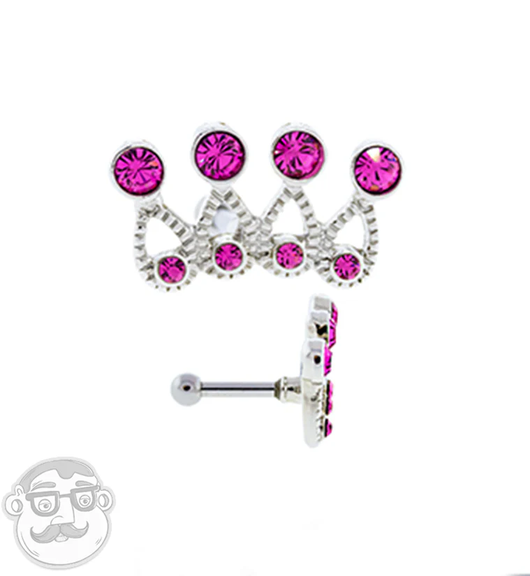 16G Pink CZ Royal Crown Tragus - Cartilage Barbell