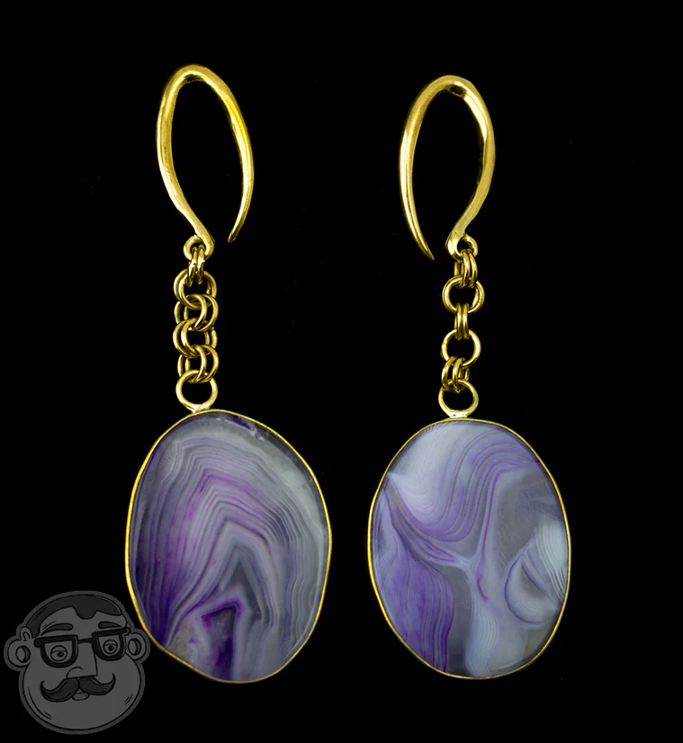 Oval Purple Line Agate Stone Brass Hangers