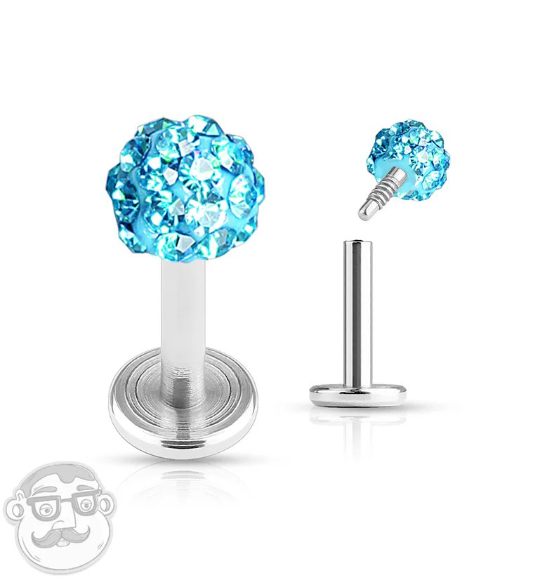 16G Aqua Crystal Internally Threaded Labret Stud