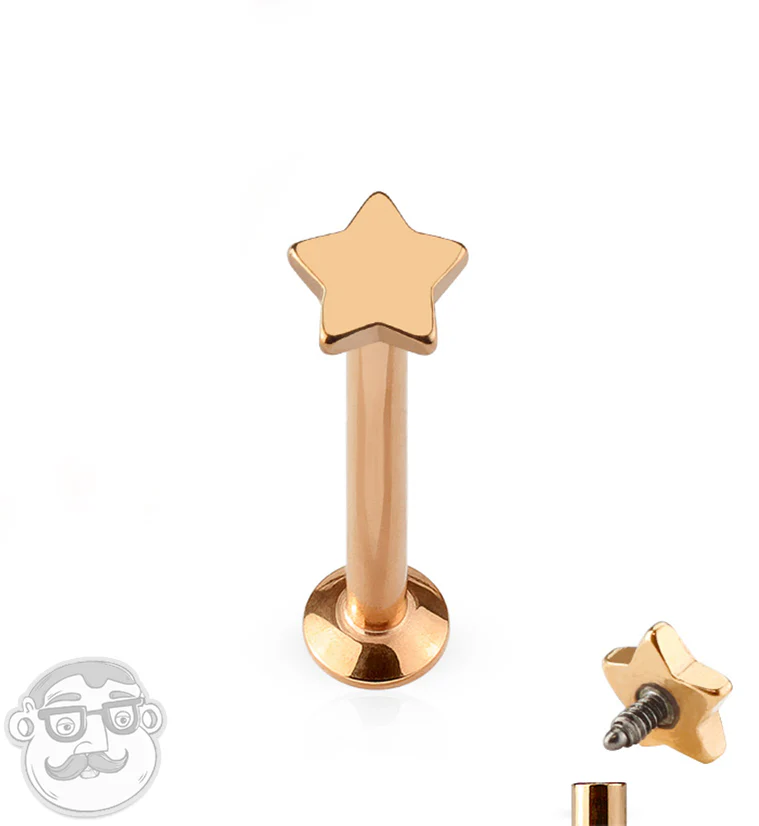 16G Rose Gold PVD Star Top Internally Threaded Flat Back Steel Post
